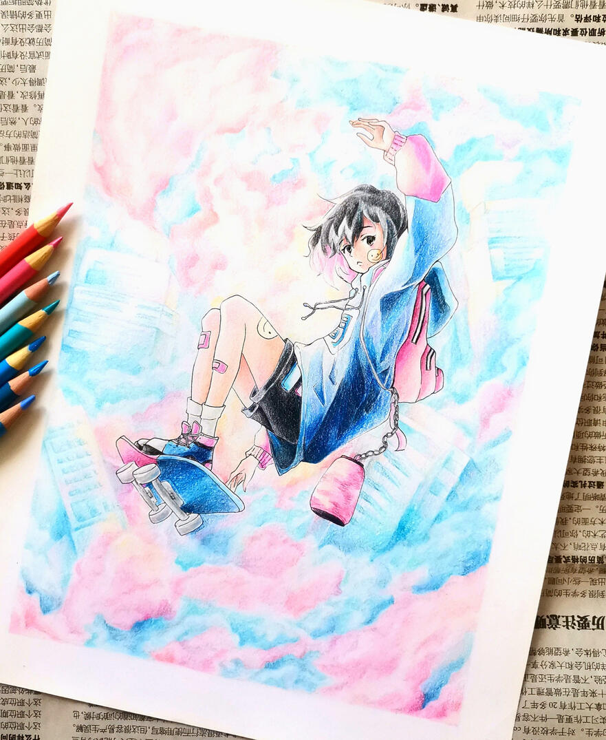 My favorite medium of all times: wooden coloring pencils on smooth paper. In recent years, I have spent most of my time designing characters and practicing more dynamic poses.Over the last year, I started exploring digital art and discovered the powerful tools offered by applications like Procreate.Traditional art: coloring pencil • watercolor